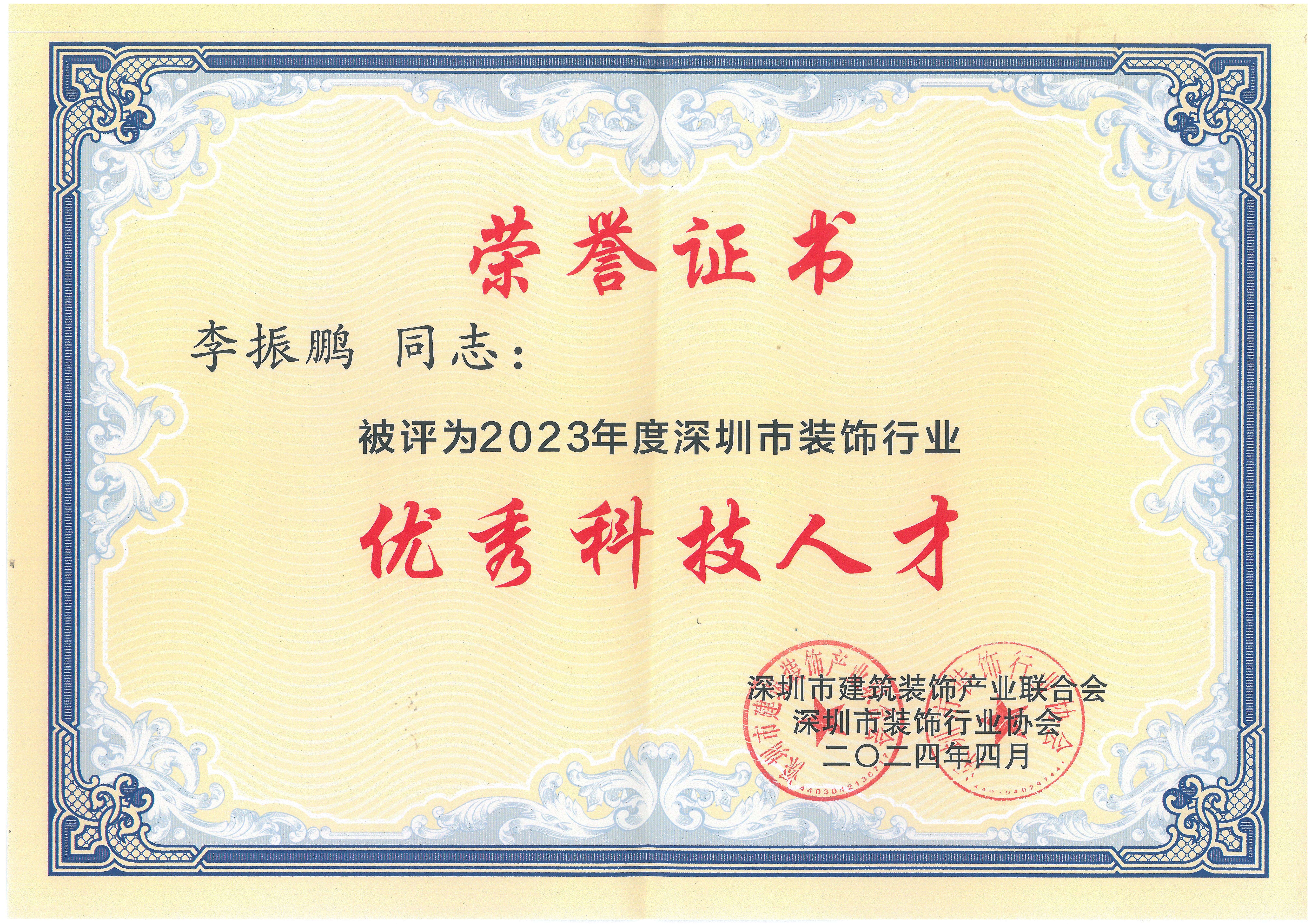 這一榮譽(yù)不僅體現了李振鵬同志個(gè)人的專(zhuān)業(yè)素養和技術(shù)實(shí)力,也代表了深圳裝飾行業(yè)協(xié)會(huì )對瑞和股份在技術(shù)創(chuàng )新與人才培養方面的高度認可。此殊榮是瑞和股份團隊不懈努力的結晶,更是激勵企業(yè)不斷追求科技創(chuàng )新,勇攀高峰的動(dòng)力源泉。