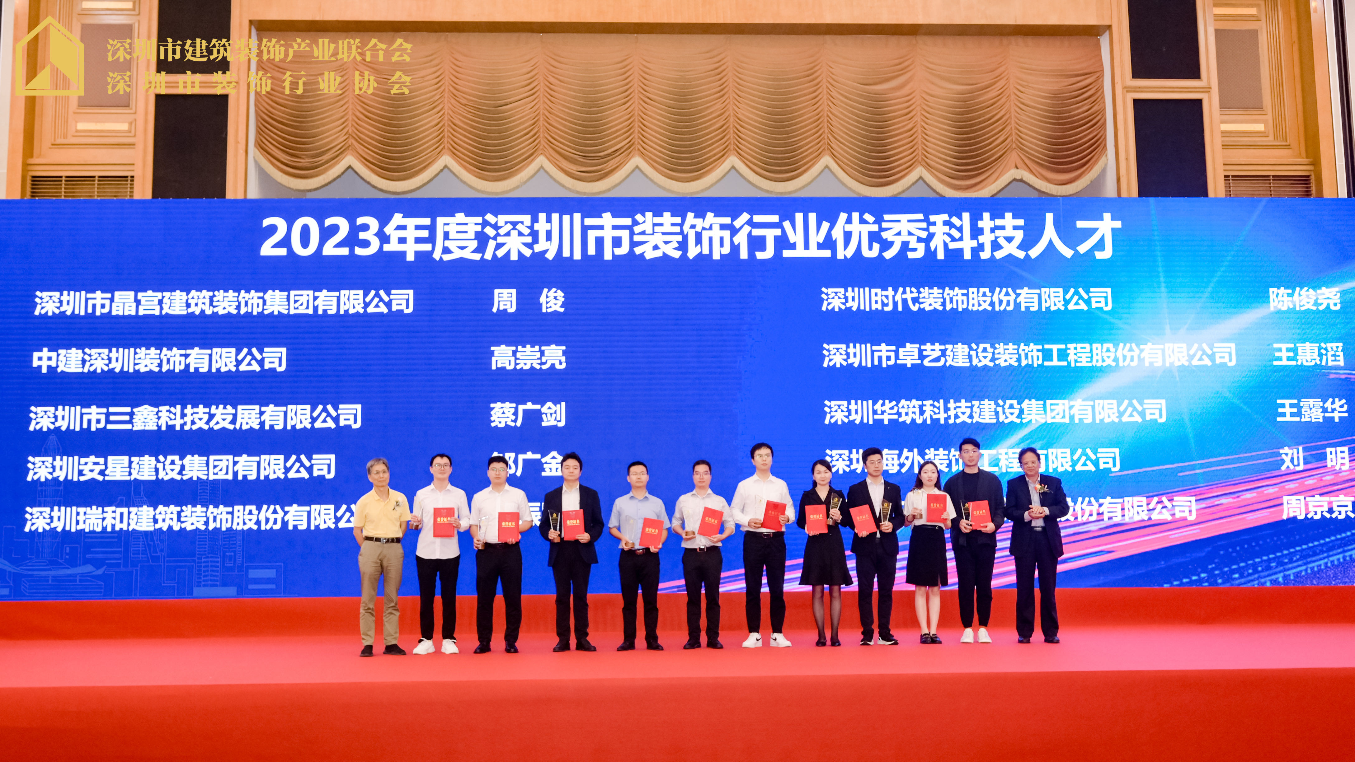 在此次盛典中,瑞和股份技術(shù)研發(fā)中心李振鵬同志因其卓越的科技研發(fā)成就,被授予“2023年度深圳市裝飾行業(yè)優(yōu)秀科技人才”榮譽(yù)稱(chēng)號。