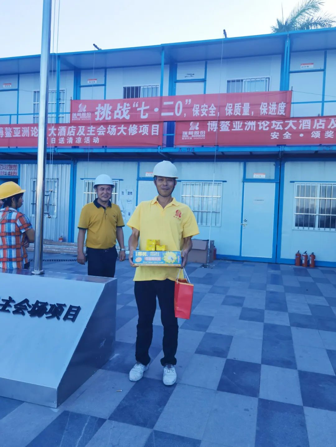 為保障施工人員身心健康,促進(jìn)項目安全施工,712日,瑞和股份為博鰲項目辛勤工作的工人們送去清涼并對優(yōu)秀班組進(jìn)行了獎勵。