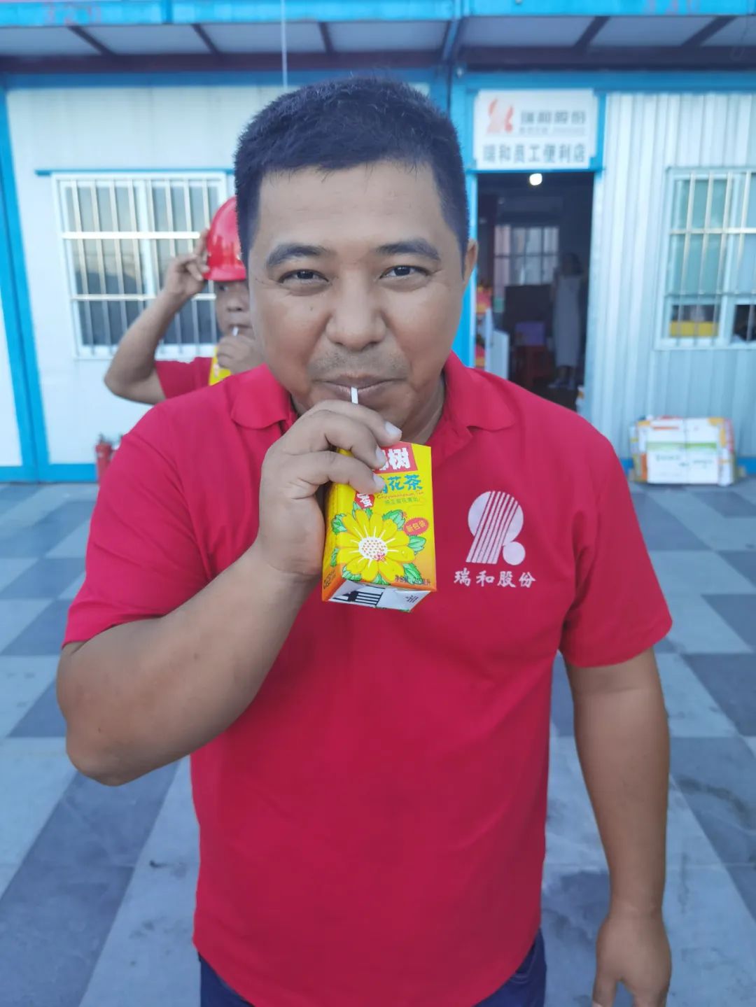 瑞和股份為這些在烈日下辛勤付出的工人們準備了菊花茶、藿香正氣水等夏季防暑降溫必備品,并發(fā)放到每一位堅守崗位的工人手里。為一線(xiàn)工人們送去溫暖關(guān)懷的同時(shí),也進(jìn)一步鞏固安全施工 健康第一的理念。
